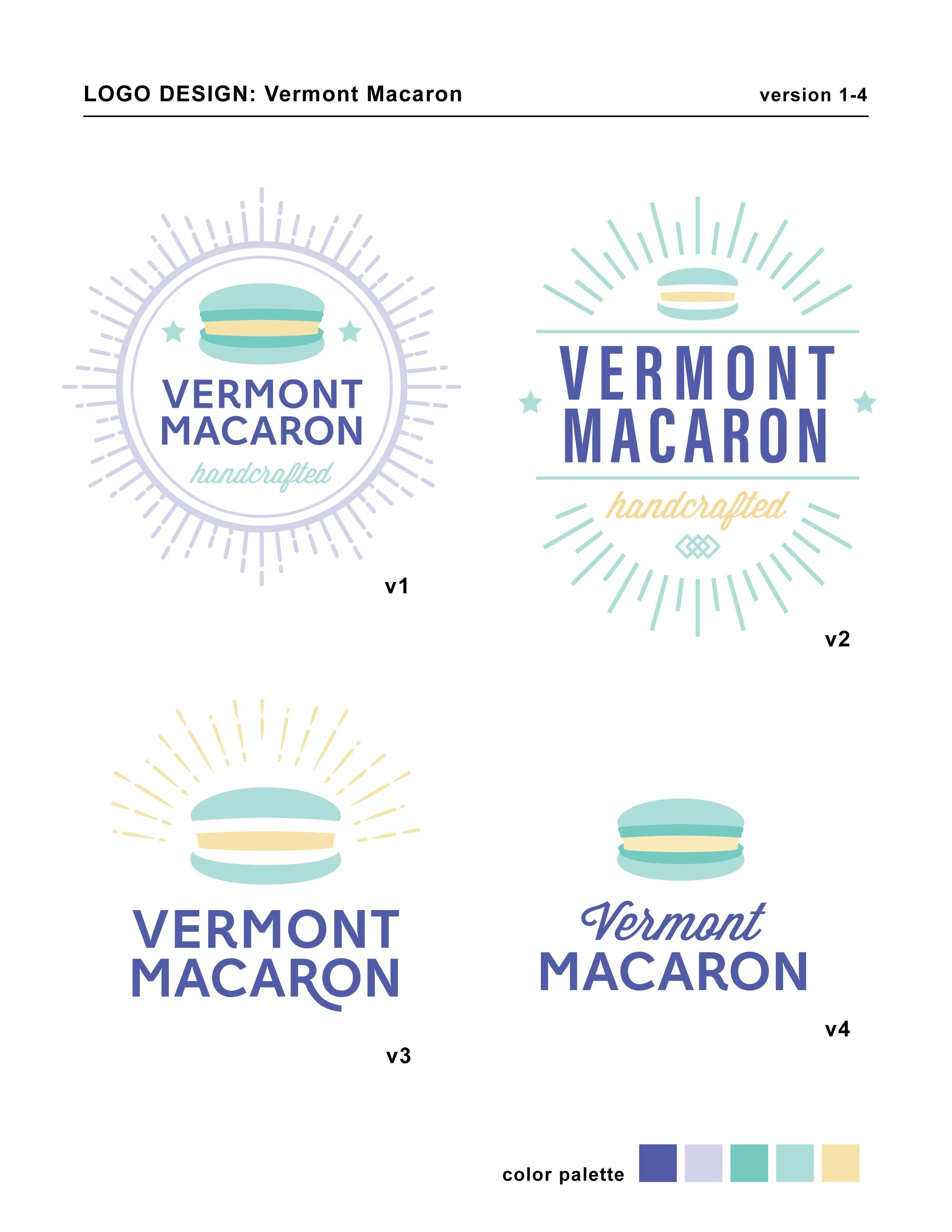 This logo was created for Vermont Macaron, a new business based near Burlington, Vermont. The layouts below show the design process, refining and adjusting the details until we landed on a final version the client was truly happy with.